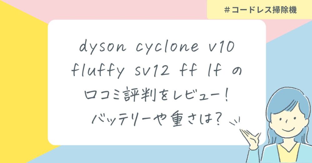 以上、dyson cyclone v10 fluffy sv12 ff lf の口コミ評判をレビュー!バッテリーや重さについてお話ししました。